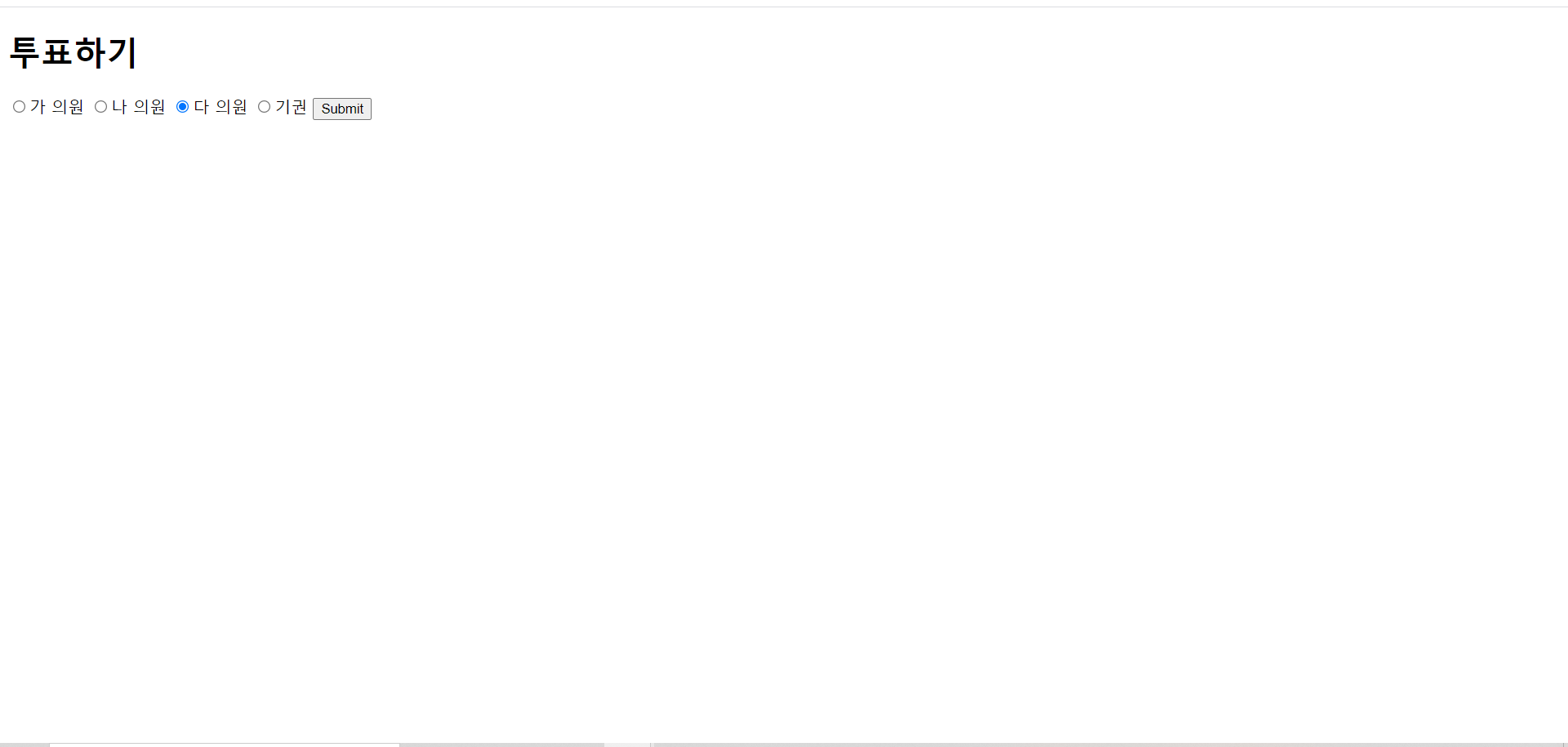 - ์ ๊ฑฐ ํ๋ณด์ ์ค ํ ๋ช ์ ์ ํํ๊ณ ํฌํํ๊ธฐ๋ฅผ ๋๋ฅด๋ฉด /result ๋ก ์ด๋